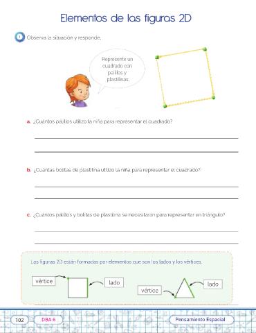 a. ¿Cuántos palillos utilizo la niña para representar el cuadrado?