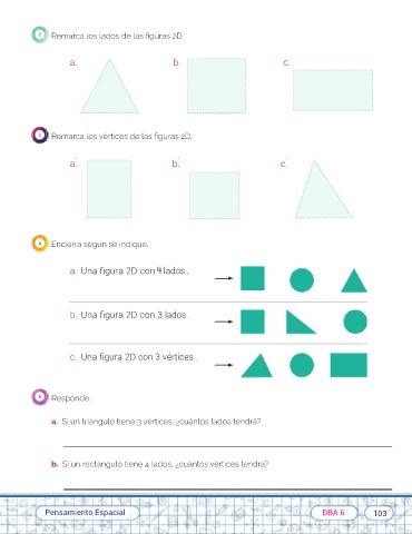 8 b. Si un rectángulo tiene 4 lados, ¿cuántos vértices tendrá?
