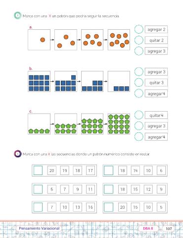 3 Marca con un✔a X las secuencias donde un patrón numérico consiste en restar.