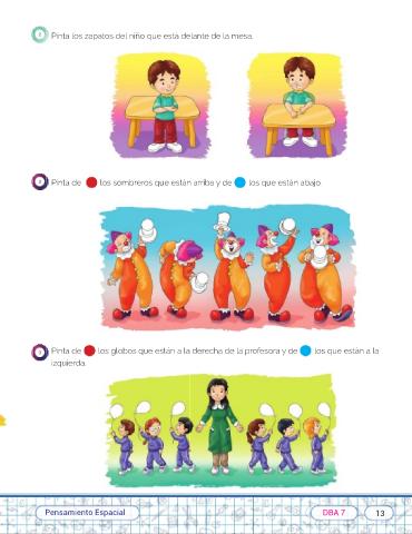 2 Pinta los zapatos del niño que está delante de la mesa.