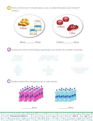4 María y Cristina llevan mercado para su casa. ¿Cuántas libras pesa cada mercado?