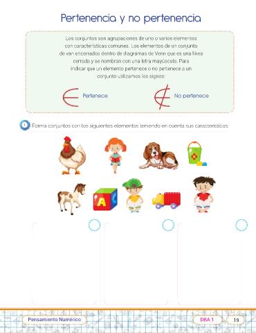 1 Forma conjuntos con los siguientes elementos teniendo en cuenta sus características: