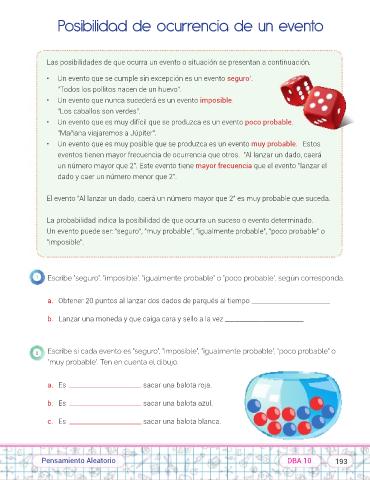 1 Escribe "seguro", "imposible", "igualmente probable" o "poco probable", según corresponda.