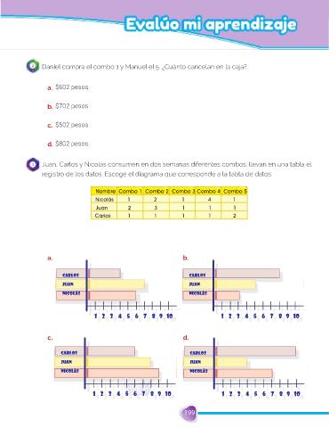 3 Juan, Carlos y Nicolás consumen en dos semanas diferentes combos; llevan en una tabla el