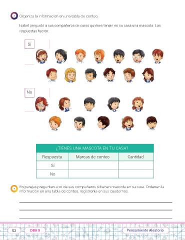 4 Isabel preguntó a sus compañeros de curso quiénes tenían en su casa una mascota. Las